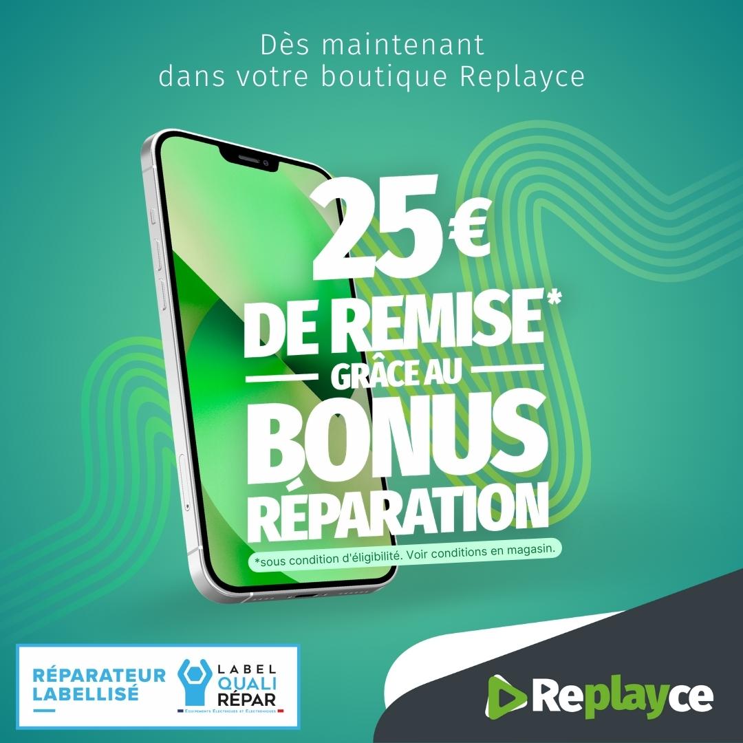 Profitez d’un bonus de 25 € sur vos réparations de smartphones et tablettes éligibles.
